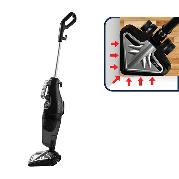 جاروبرقی پرتابل داما مدل DVC1200IV جاروبرقی دو در یک است که به صورت دستی و ایستاده استفاده می شود و برخلاف جاروشارژی، کابل برق دارد و نگرانی بابت تمام شدن شارژ آن نخواهید داشت. این نسل جدید از جاروبرقیهای ایستاده، خیلی سریع جایگزین جاروبرقی میشود، زیرا متراژ خانهها روز به روز کوچکتر شده و دیگر نیازی به جاروبرقی بزرگ نخواهند داشت. جاروبرقی داما مدل ایستاده با گنجایش بالای مخزن، کابل برق 6 متری، توان 750 وات بسیار کم صدا است و از قیمت مناسبی نیز برخوردار است. کاربرد این جاروبرقی ایستاده سیم دار نیز بسیار راحت و بیدردسر است و به دلیل وزن سبکی که دارد، حمل و جابهجایی آن به راحتی انجام میگردد.